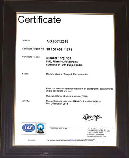 In house facility of incoming in process and final inspection of components so as to ensure quality of steel and forged components as per customer expectation.